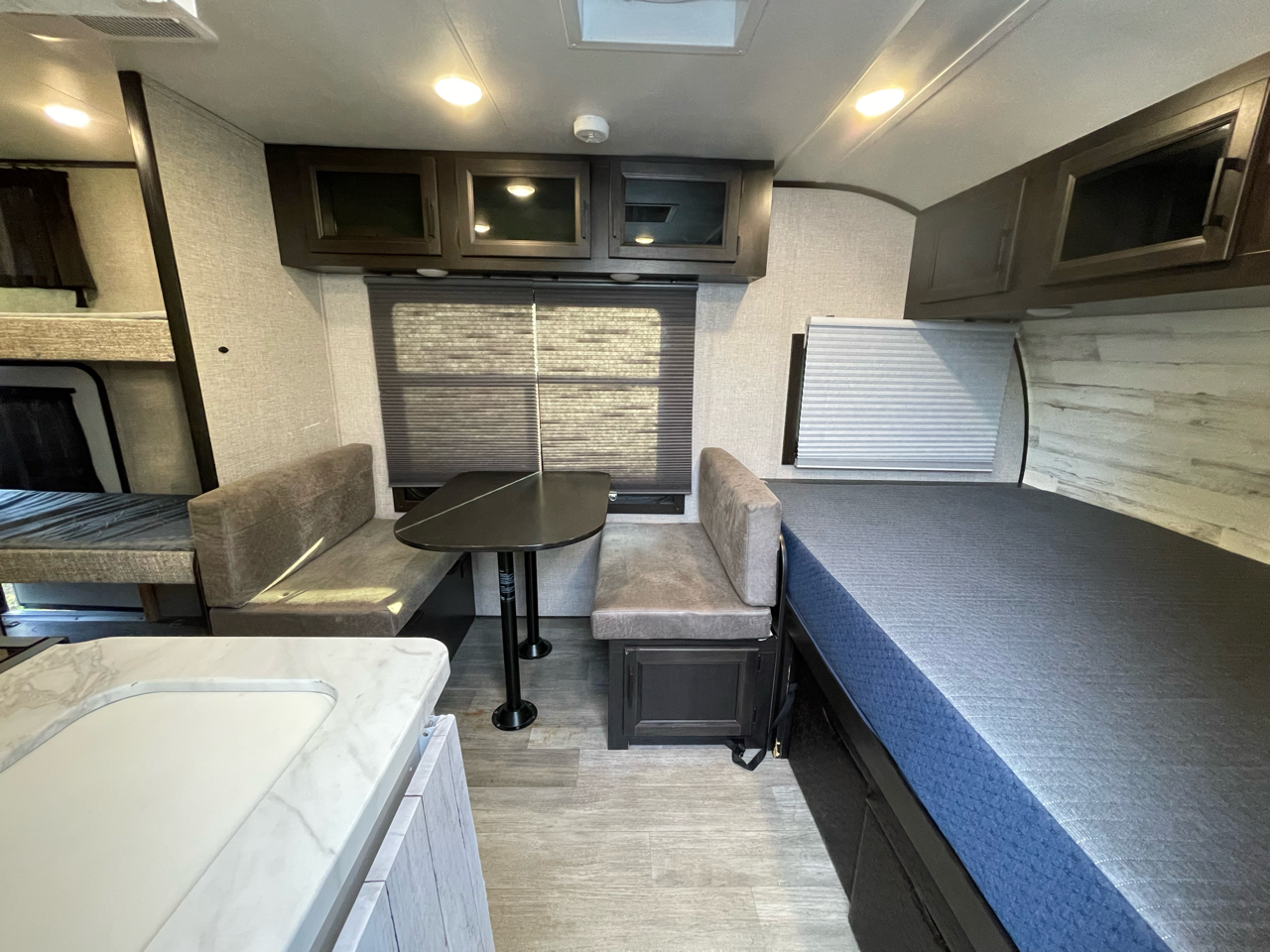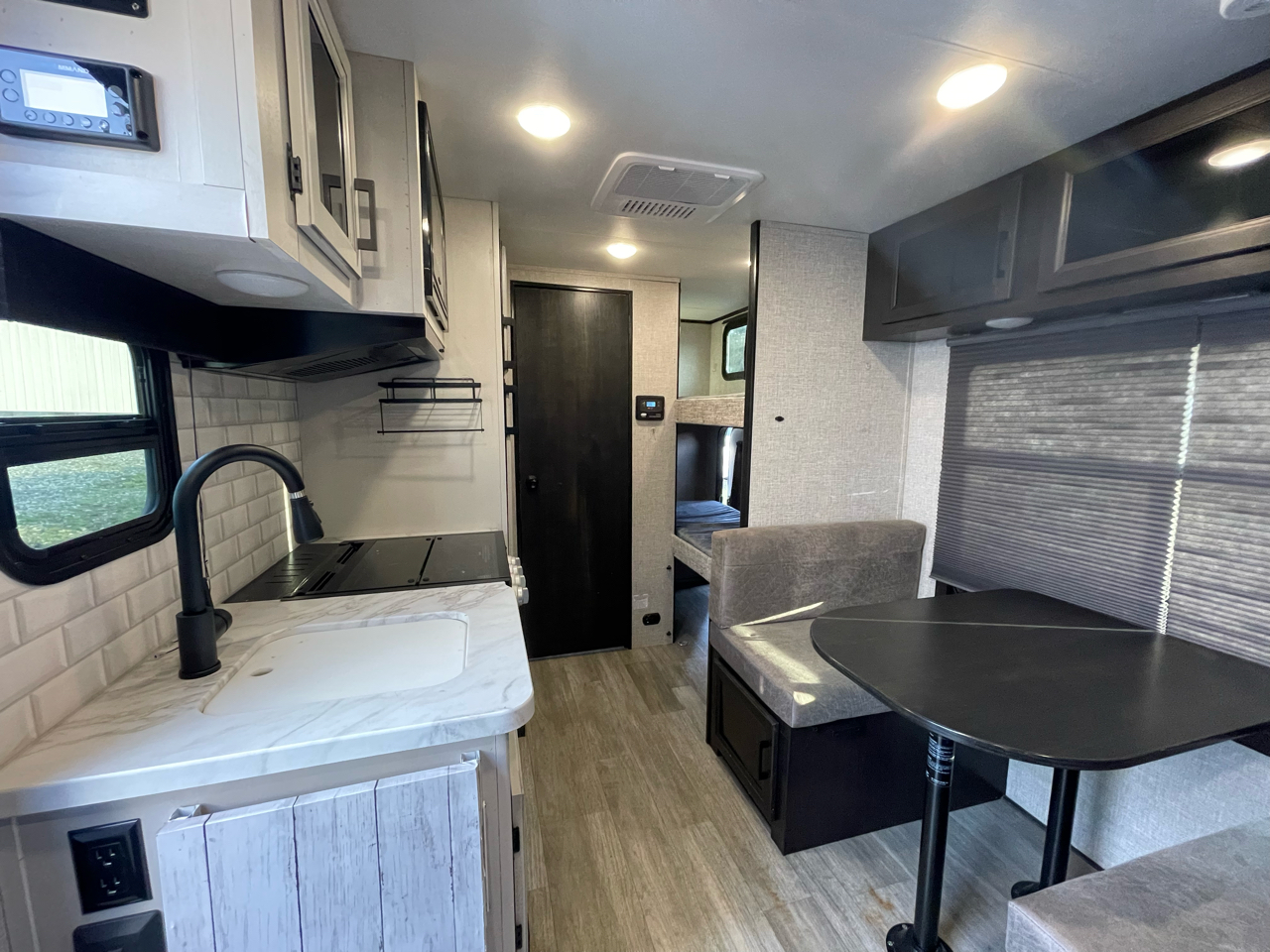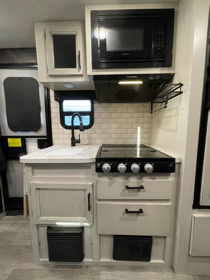 2022 Jayco Jay Feather Micro 171BH Jayco Jay Feather Micro travel trailer 171BH highlights: Front Queen Bed Jayport with LP Quick Connect Three Burner Cooktop 13' Power Awning with LED Lights If you've been looking for a lightweight travel trailer with more sleeping space, your search is over with this model! There are bunk beds in the back near the full bath for convenience, a front queen bed, plus a booth dinette that will double as dining and sleeping space. This model also includes overhead compartments for your belongings, plus exterior storage for you fishing poles or tackle boxes. The Jay Feather Micro travel trailers by Jayco are for those looking for lightweight camping, while not sacrificing comfort and convenience. The modern retro graphics package is sure to be eye-catching, and the newly designed interiors will have you feeling right at home. Each model features an American-made frame with an integrated A-frame, Goodyear off-road tires, plus galvanized steel and impact-resistant wheel wells for added protection during transport. Some of the interior comforts you will enjoy are the residential vinyl flooring with cold crack resistance, screwed and glued cabinetry, and LED lighting. Adventure is waiting for you with a Jay Feather Micro travel trailer. Fresh Water Tank Capacity 55 gal Gray Water Tank Capacity 30.5 gal Black Water Tank Capacity 30.5 gal Water Heater Capacity 6 gal Sleeps 5 Awning Length 13 ft Solar Prep Yes Power Tongue Jack Yes Weight 3,930 lbs. Gross Vehicle Weight 4,995 lbs. Cargo Carrying Capacity (CCC) 1,065 lbs. Hitch Weight 395 lbs. Exterior Length 20 ft 2 in Exterior Width 8 ft 5 in Exterior Height 10 ft 5 in Interior Height 6 ft 6 in Air Conditioning Yes Furnace BTUs 19000 Located at Stevens Auto Sales at 14511 Canyon RD E Puyallup, WA 98373 253-905-0331