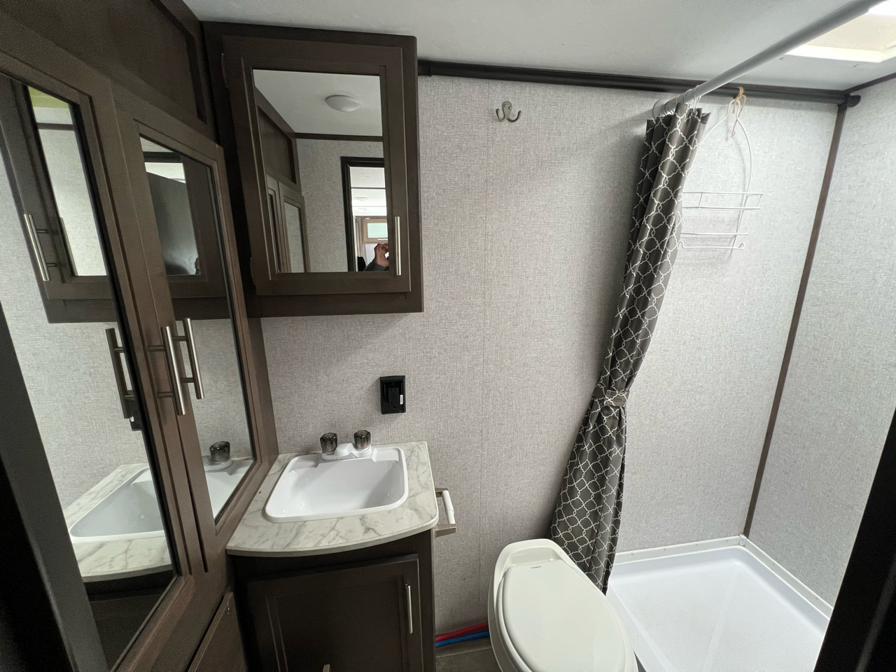 Also Includes: * FRONT QUEEN BED * 3 BURNER STOVE * MICROWAVE * U-SHAPED DINETTE * POWER TONGUE JACK * REAR BATH/SHOWER * SINGLE DOOR REFRIGERATOR * OVEN * SPARE TIRE * ROOF AC * 1 SLIDE OUT